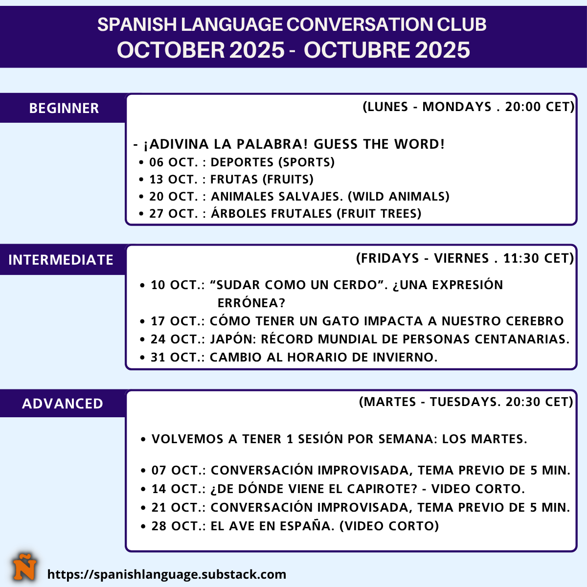 SESIONES DE CONVERSACIÓN EN ESPAÑOL. OCTUBRE 2025
